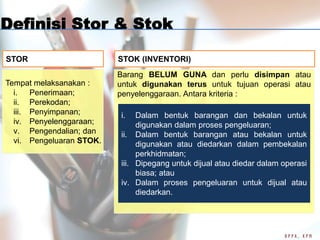 Mula2 dulu stor ni ok sikit tapi makin lama makin serabut. Barang akan sebaiknya disusun sesuai kelompok misalnya berdasarkan dari alamat penempatan ukuran besar kecilnya kode dari barang tersebut merk dan lain-lain. Setiap kali cari barang mesti tak jumpa pastu lepas punggah jadi bersepah.